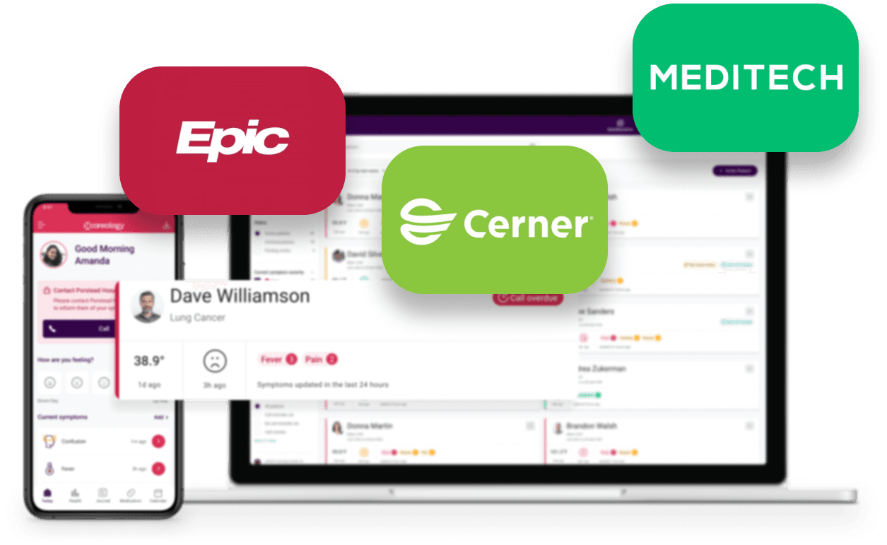 Careology data is surfaced directly in Careology Professional online, ensuring clinical teams have full oversight of their patients, without the need for complex deployments. Our interoperability engine also allows for Careology data to be displayed and seamlessly integrated with EMR or ePrescribing systems, using FHIR and HL7, through to CSV data exchange.