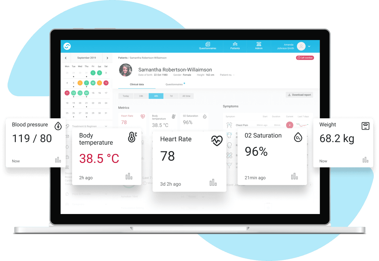 Scoring symptoms and side effects provides visibility of how the patient is feeling, and means they know when to report any issues. Bluetooth device connectivity also helps build an understanding of emerging issues and patient status.
